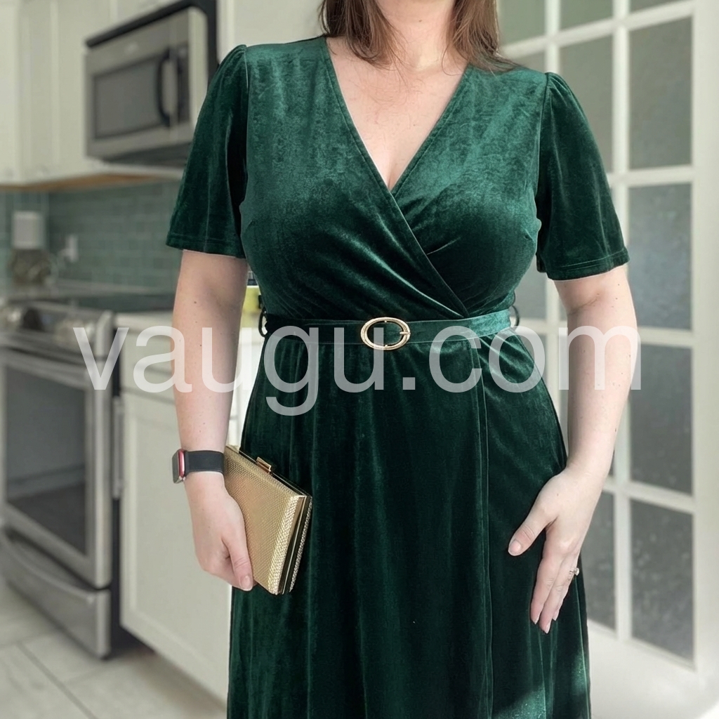 Emerald Velvet Wrap Long Sleeve Maxi Dress