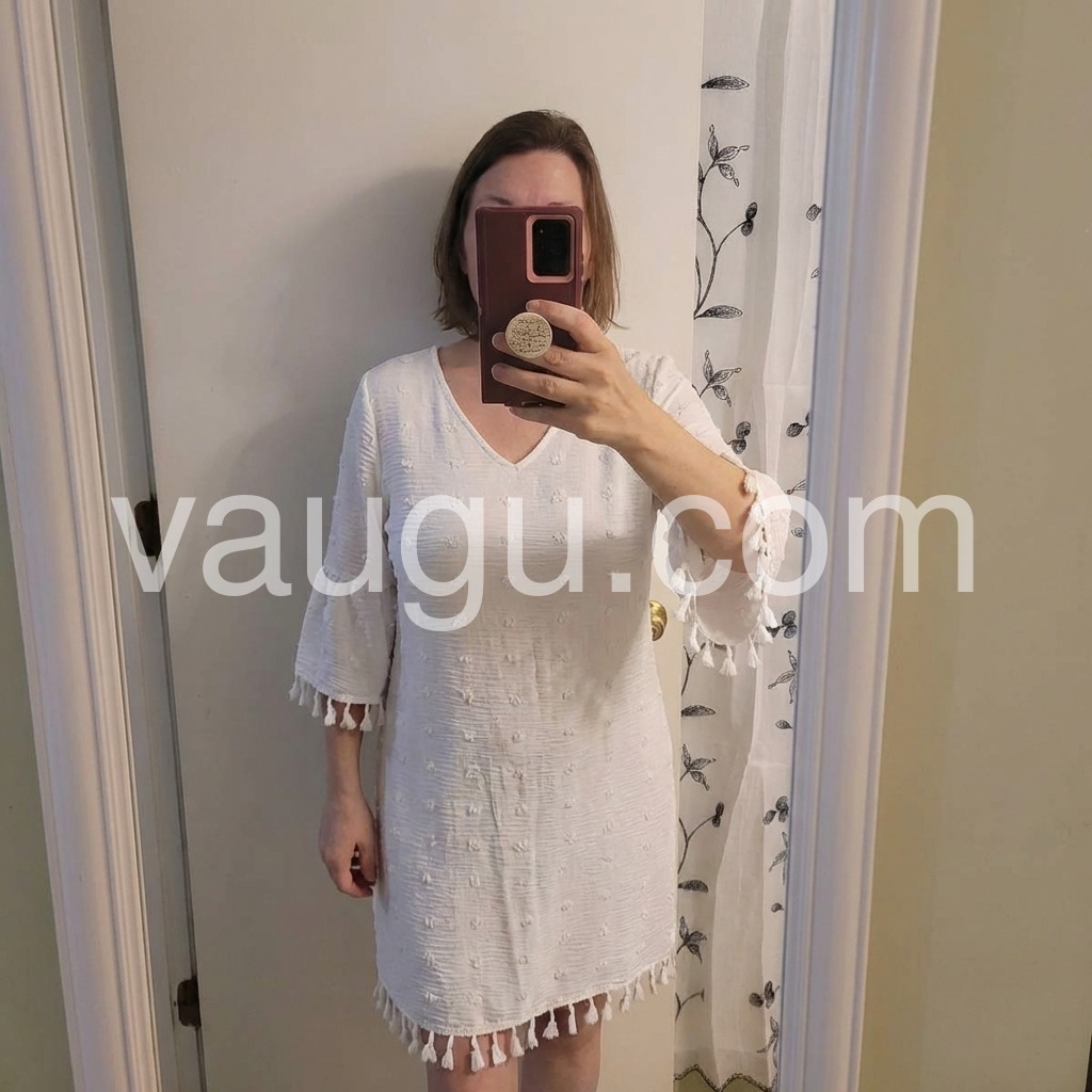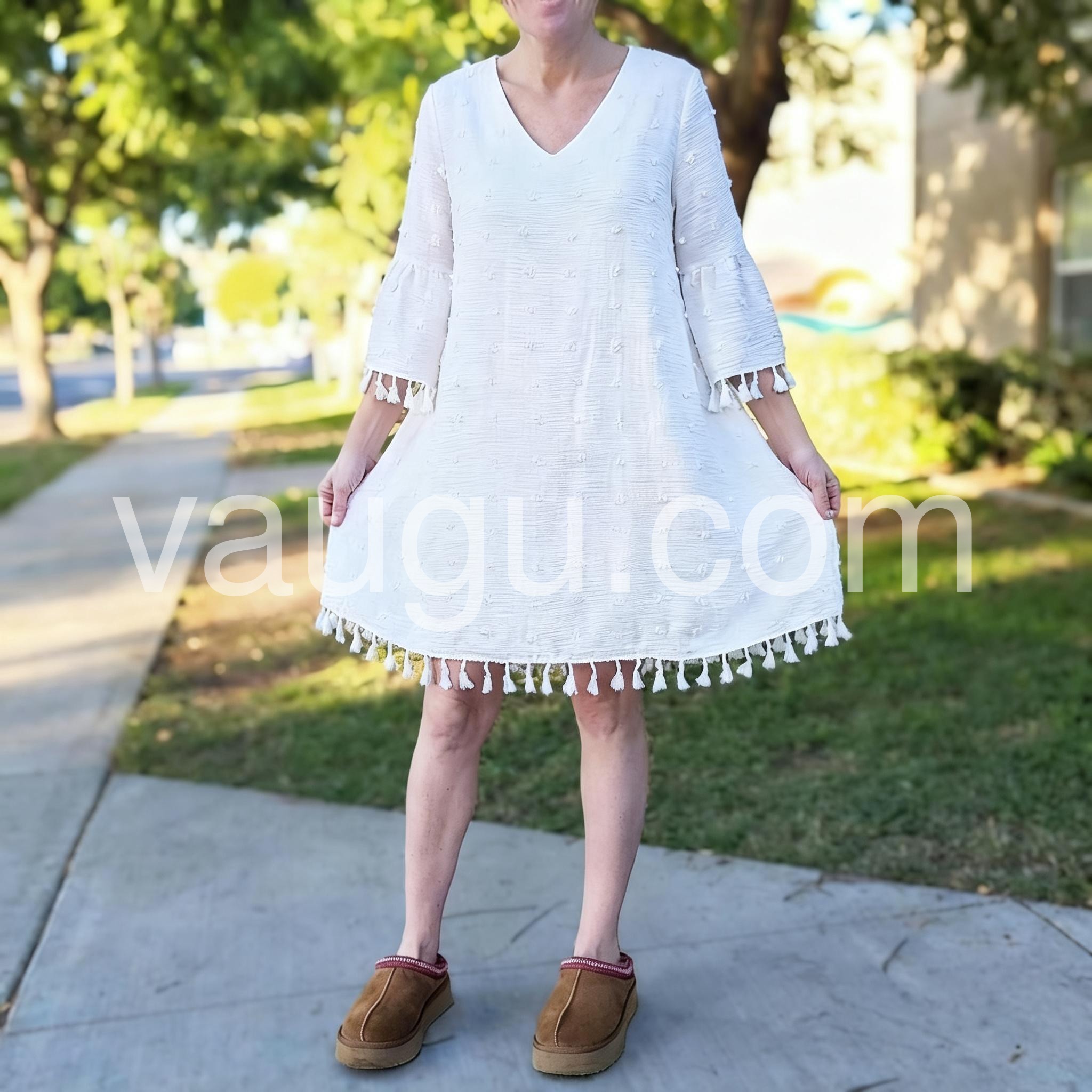 This Stylish White Plain V-Neck 3/4 Sleeve Mini Dress is a timeless addition to any wardrobe. Featuring a flattering v-neck and 3/4 sleeves, this dress is perfect for any occasion. Its plain design allows for easy accessorizing and the mini length adds a touch of elegance.