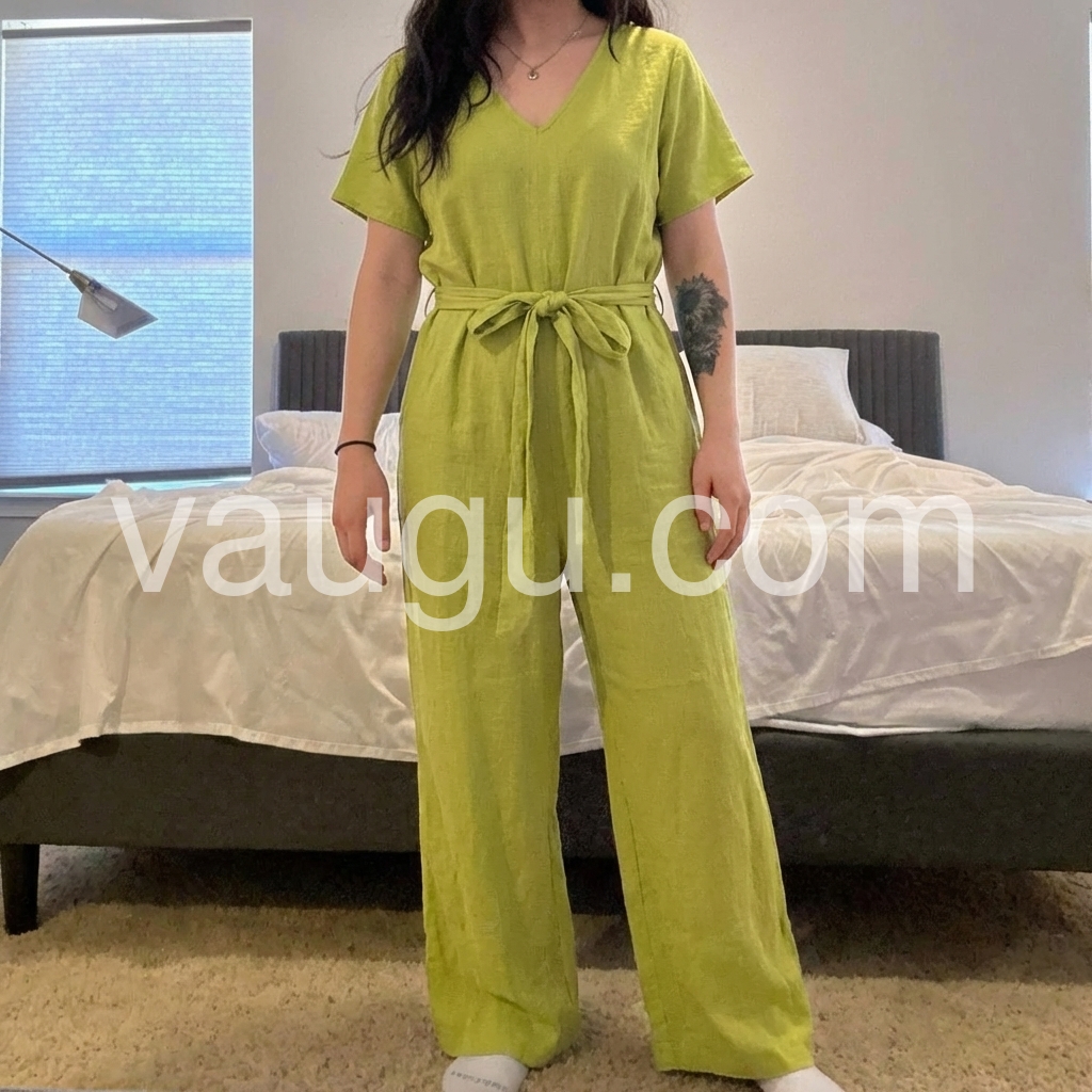 This versatile Green Plain Short Sleeve Jumpsuit is a must-have for any wardrobe. Made with high-quality, breathable fabric, it offers both comfort and style. The short sleeves provide a touch of elegance, making it perfect for any occasion. Elevate your fashion game with this chic jumpsuit.
