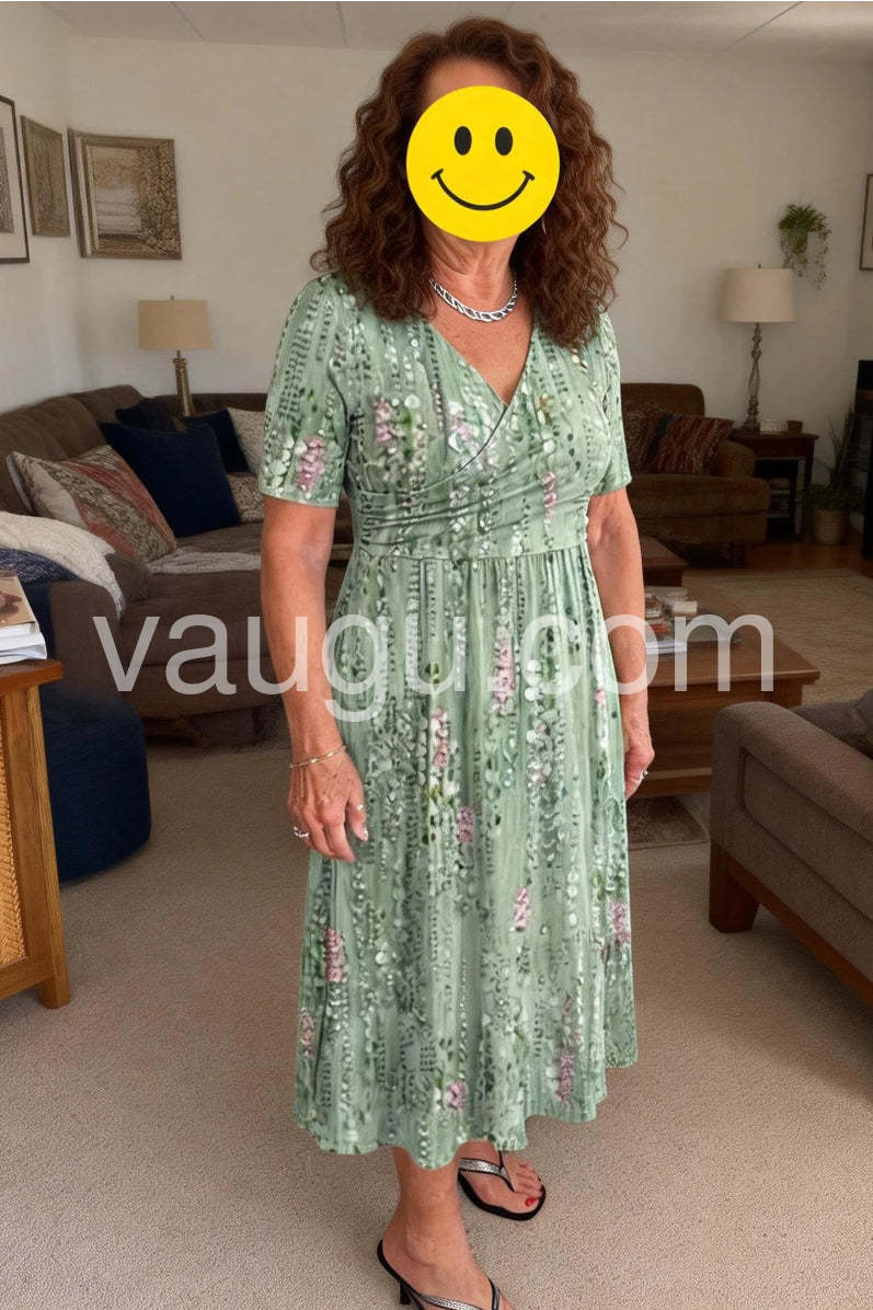 This Green Plant Print Side Pocket Midi Dress combines style and comfort with its elegant design and convenient pockets. Made with a soft and breathable fabric, it features a trendy green plant print that adds a touch of nature to your wardrobe. Perfect for any occasion, this dress is a must-have for any fashion-forward individual.