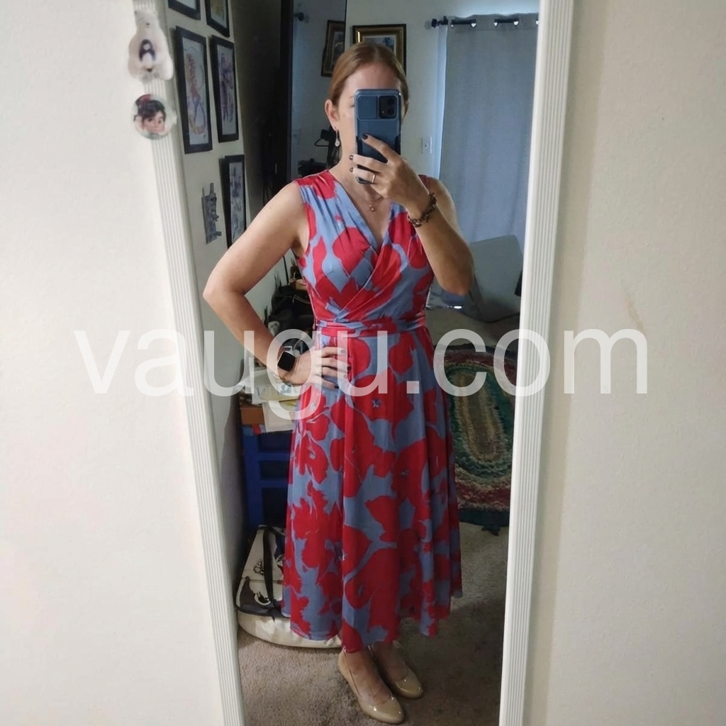 Elevate your wardrobe with this sophisticated floral print midi dress. The sleeveless design offers versatility for layering while the elegant silhouette flatters your figure. Crafted with attention to detail, this dress transitions effortlessly from professional settings to evening occasions. The timeless floral pattern adds a refined touch to this essential wardrobe investment.