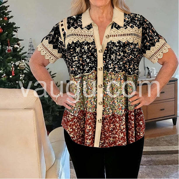Women's Vintage Patchwork Floral Blouse