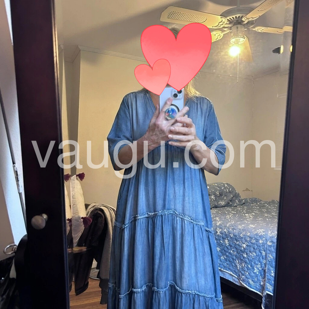 Blue Denim Plain 3/4 Sleeve Maxi Dress