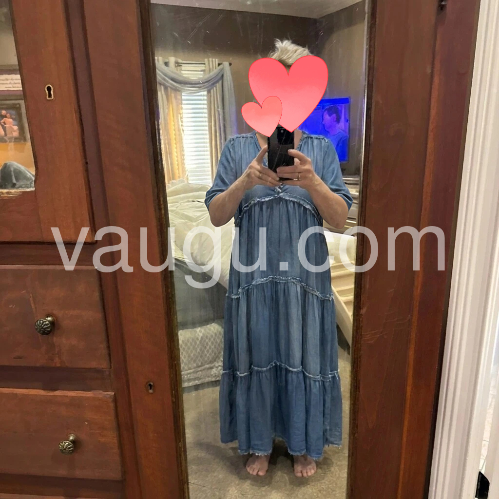 This Blue Denim Plain 3/4 Sleeve Maxi Dress is a must-have for any wardrobe. Its classic design and 3/4 sleeves make it versatile for any occasion. The high-quality denim material ensures durability and comfort, while the plain blue color adds a touch of sophistication. Elevate your style with this timeless piece.
